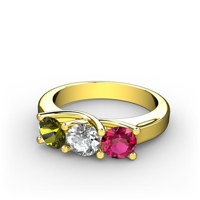 Peridot, swarovski ve rodolit garnet 18 ayar altın yüzük