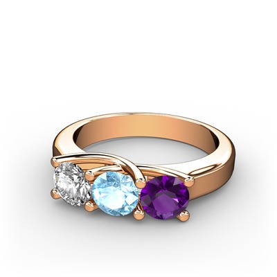 Pırlanta, akuamarin ve ametist 8 ayar rose altın yüzük (0.5 karat)