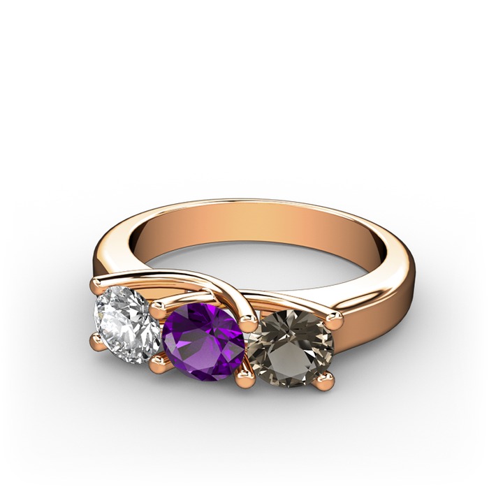 Pırlanta, ametist ve dumanlı kuvars 18 ayar rose altın yüzük (0.5 karat)