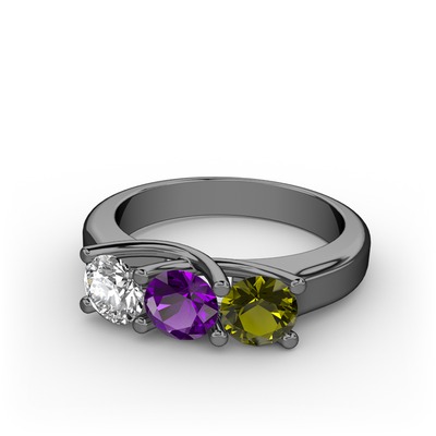 Pırlanta, ametist ve peridot 925 ayar siyah rodyum kaplama gümüş yüzük (0.5 karat)