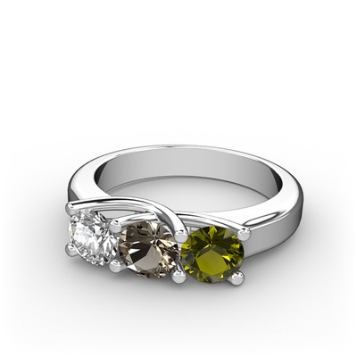 Pırlanta, dumanlı kuvars ve peridot 18 ayar beyaz altın yüzük (0.5 karat)