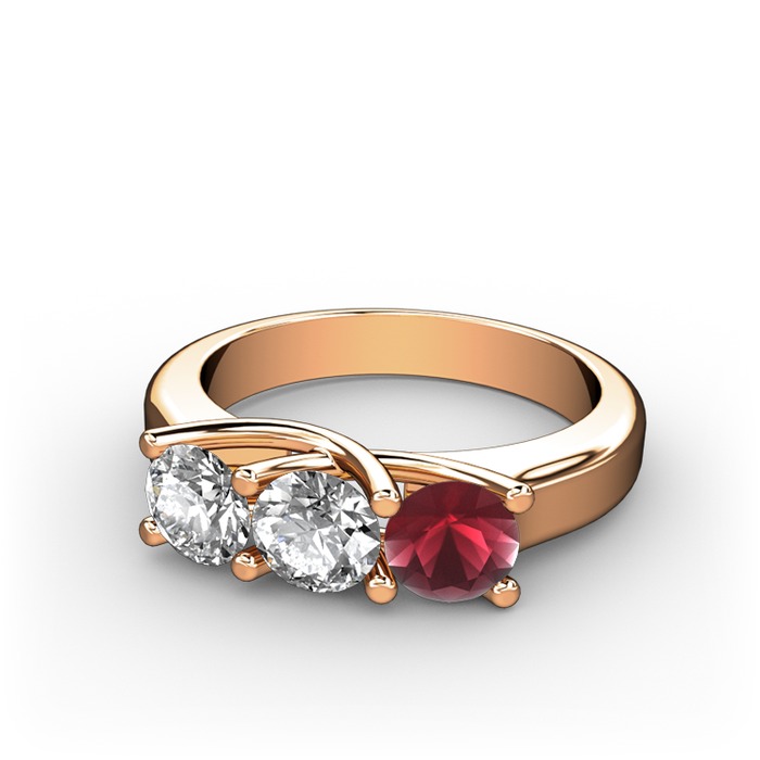 Pırlanta ve kök yakut 18 ayar rose altın yüzük (1 karat)