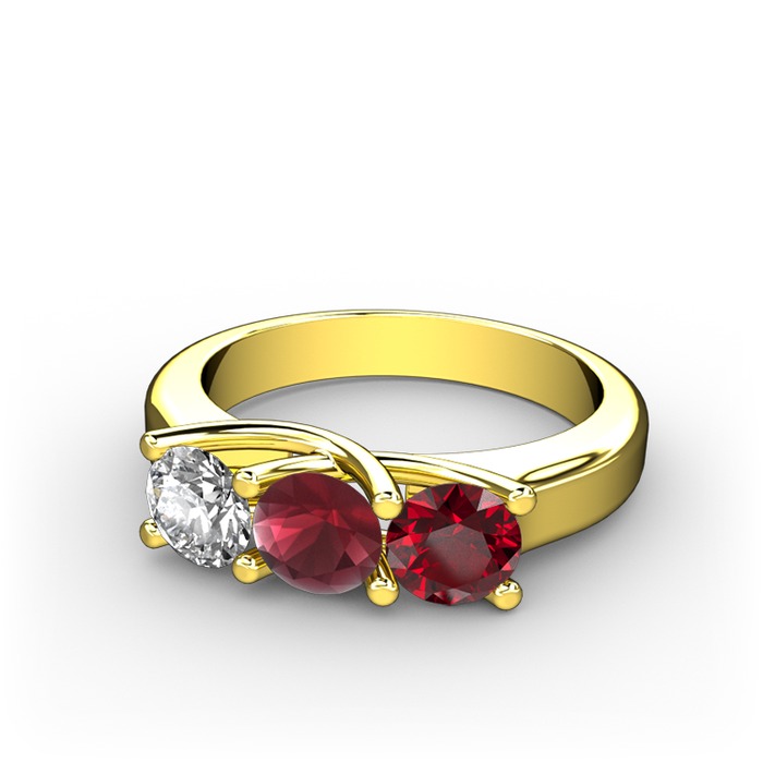 Pırlanta, kök yakut ve garnet 14 ayar altın yüzük (0.5 karat)