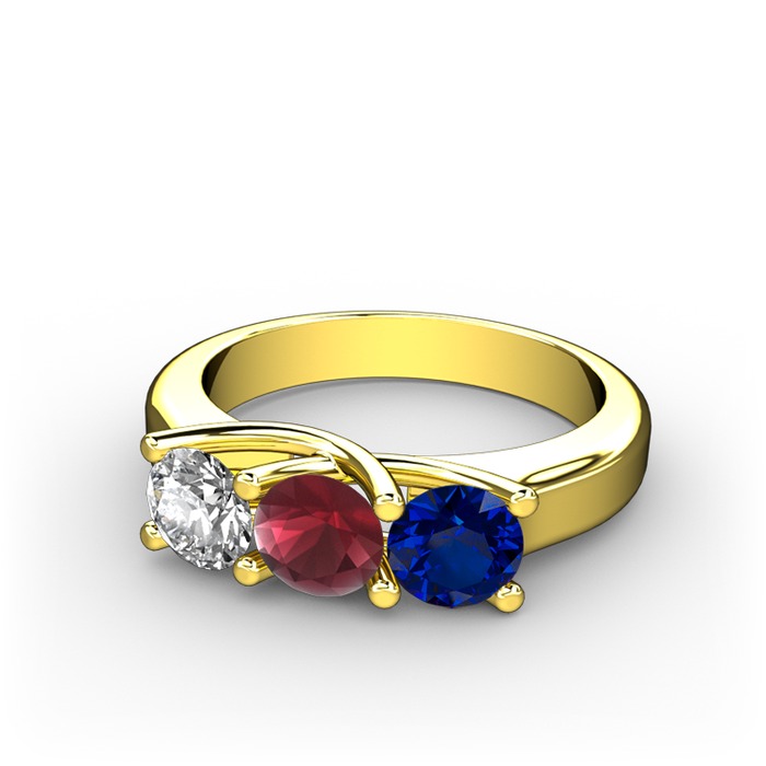 Pırlanta, kök yakut ve lab safir 18 ayar altın yüzük (0.5 karat)