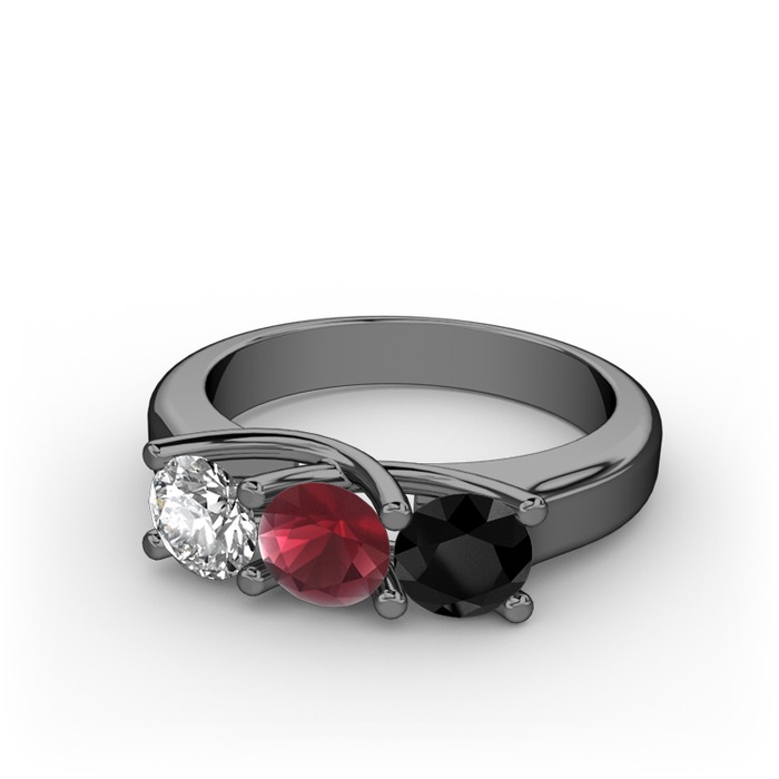 Pırlanta, kök yakut ve siyah zirkon 925 ayar siyah rodyum kaplama gümüş yüzük (0.5 karat)