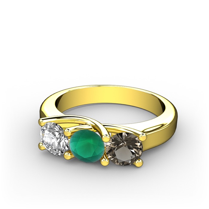 Pırlanta, kök zümrüt ve dumanlı kuvars 8 ayar altın yüzük (0.5 karat)