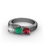 Pırlanta, kök zümrüt ve kök yakut 925 ayar siyah rodyum kaplama gümüş yüzük (0.5 karat)