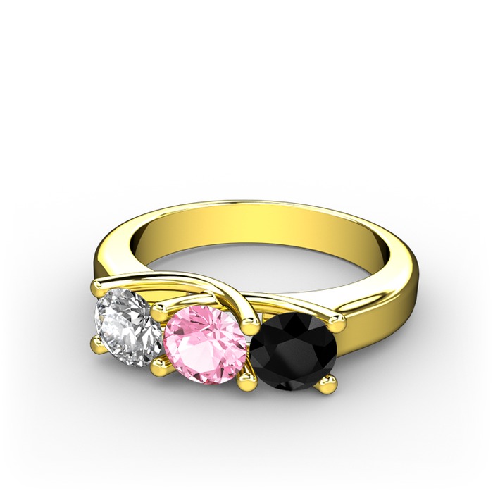 Pırlanta, pembe kuvars ve siyah zirkon 8 ayar altın yüzük (0.5 karat)