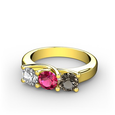 Pırlanta, rodolit garnet ve dumanlı kuvars 18 ayar altın yüzük (0.5 karat)