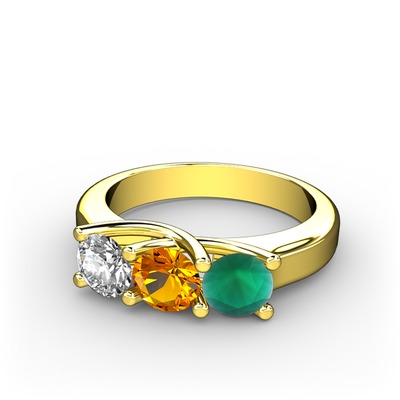Pırlanta, sitrin ve kök zümrüt 14 ayar altın yüzük (0.5 karat)