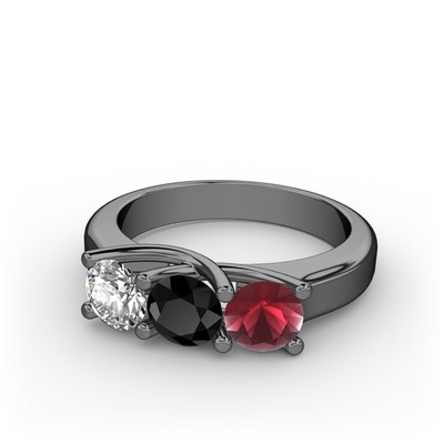 Pırlanta, siyah zirkon ve kök yakut 925 ayar siyah rodyum kaplama gümüş yüzük (0.5 karat)