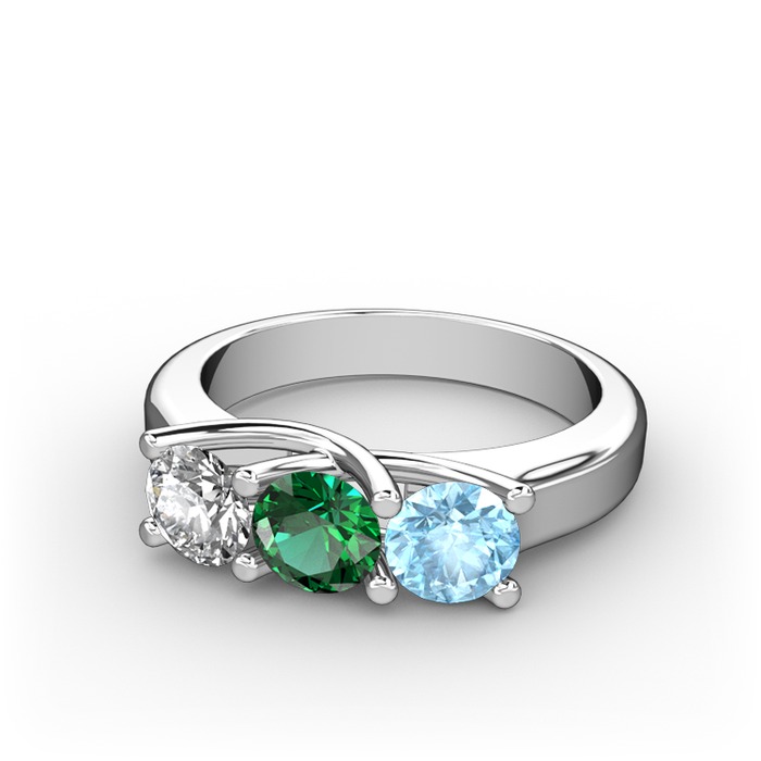 Pırlanta, yeşil kuvars ve akuamarin 8 ayar beyaz altın yüzük (0.5 karat)