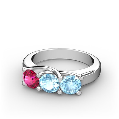 Rodolit garnet ve akuamarin 14 ayar beyaz altın yüzük