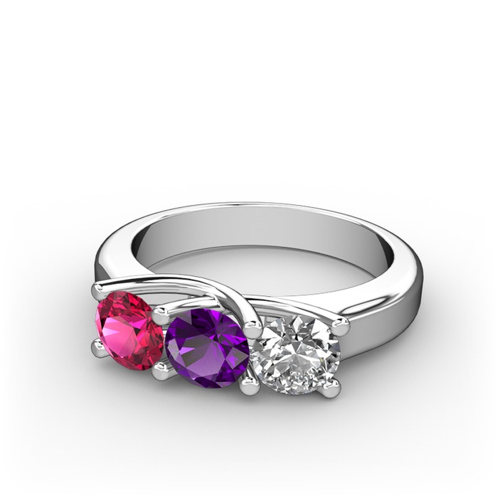 Rodolit garnet, ametist ve beyaz zirkon 14 ayar beyaz altın yüzük