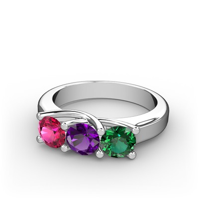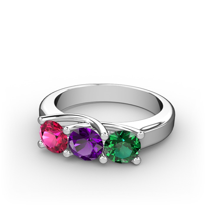 Rodolit garnet, ametist ve yeşil kuvars 8 ayar beyaz altın yüzük