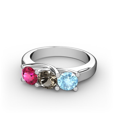Rodolit garnet, dumanlı kuvars ve akuamarin 14 ayar beyaz altın yüzük