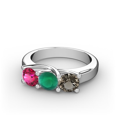 Rodolit garnet, kök zümrüt ve dumanlı kuvars 14 ayar beyaz altın yüzük