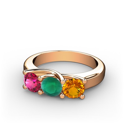 Rodolit garnet, kök zümrüt ve sitrin 18 ayar rose altın yüzük