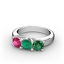Rodolit garnet, kök zümrüt ve yeşil kuvars 8 ayar beyaz altın yüzük