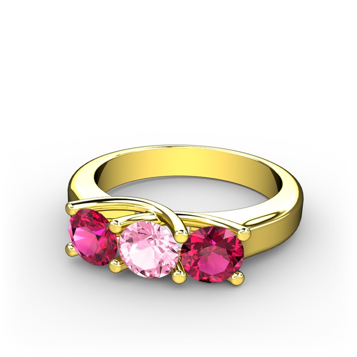 Rodolit garnet ve pembe kuvars 18 ayar altın yüzük