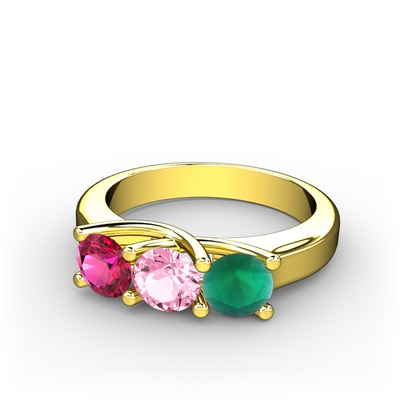 Rodolit garnet, pembe kuvars ve kök zümrüt 14 ayar altın yüzük