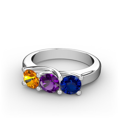 Sitrin, ametist ve lab safir 14 ayar beyaz altın yüzük