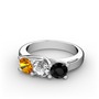 Sitrin, beyaz zirkon ve siyah zirkon 14 ayar beyaz altın yüzük