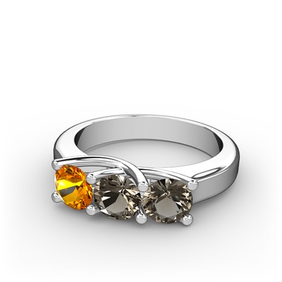Sitrin ve dumanlı kuvars 925 ayar gümüş yüzük