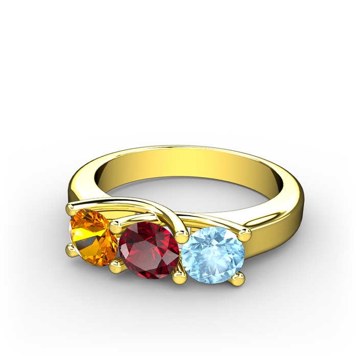 Sitrin, garnet ve akuamarin 8 ayar altın yüzük