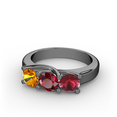 Sitrin, garnet ve kök yakut 925 ayar siyah rodyum kaplama gümüş yüzük