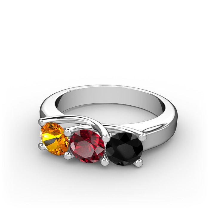 Sitrin, garnet ve siyah zirkon 14 ayar beyaz altın yüzük