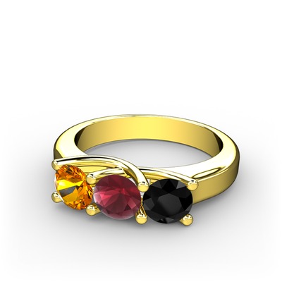 Sitrin, kök yakut ve siyah zirkon 8 ayar altın yüzük
