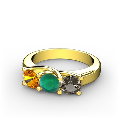 Sitrin, kök zümrüt ve dumanlı kuvars 925 ayar altın kaplama gümüş yüzük