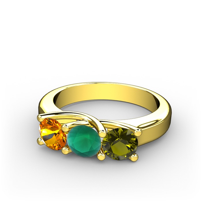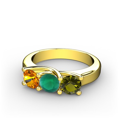 Sitrin, kök zümrüt ve peridot 18 ayar altın yüzük