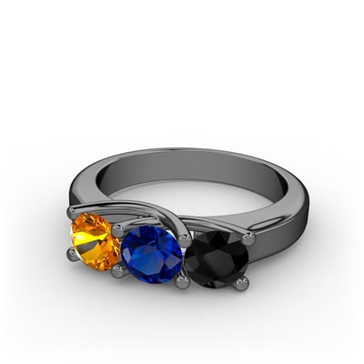 Sitrin, lab safir ve siyah zirkon 925 ayar siyah rodyum kaplama gümüş yüzük