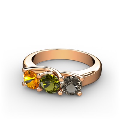 Sitrin, peridot ve dumanlı kuvars 14 ayar rose altın yüzük