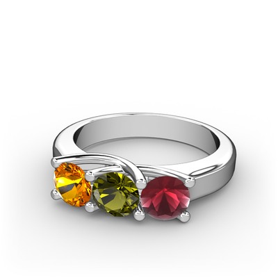 Sitrin, peridot ve kök yakut 8 ayar beyaz altın yüzük