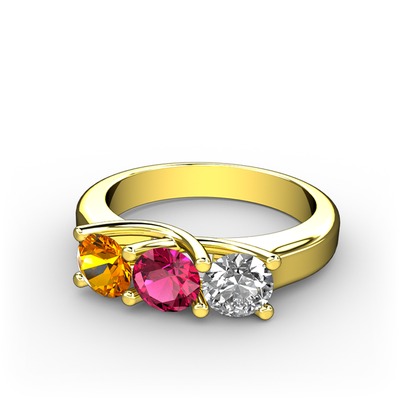 Sitrin, rodolit garnet ve beyaz zirkon 925 ayar altın kaplama gümüş yüzük