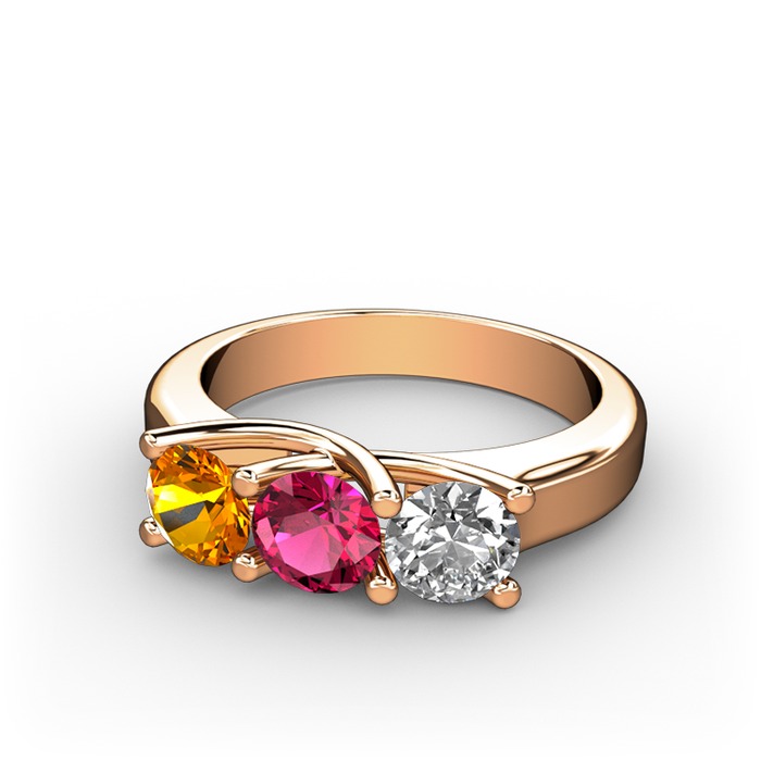 Sitrin, rodolit garnet ve pırlanta 925 ayar rose altın kaplama gümüş yüzük (0.5 karat)