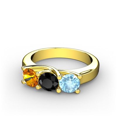 Sitrin, siyah zirkon ve akuamarin 8 ayar altın yüzük