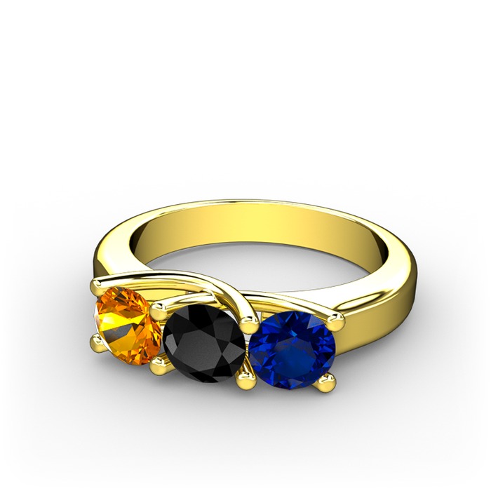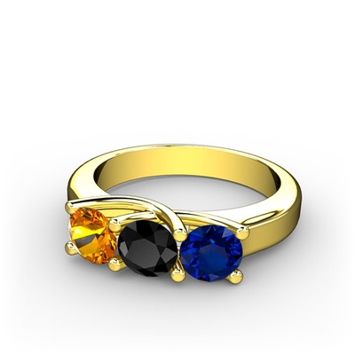 Sitrin, siyah zirkon ve lab safir 18 ayar altın yüzük