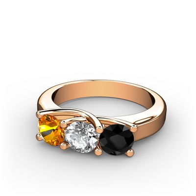 Sitrin, swarovski ve siyah zirkon 18 ayar rose altın yüzük