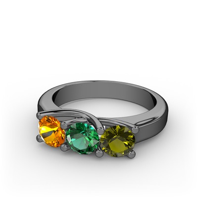 Sitrin, yeşil kuvars ve peridot 925 ayar siyah rodyum kaplama gümüş yüzük