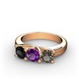 Siyah zirkon, ametist ve dumanlı kuvars 14 ayar rose altın yüzük
