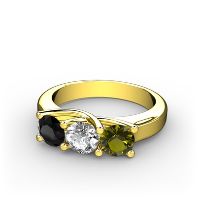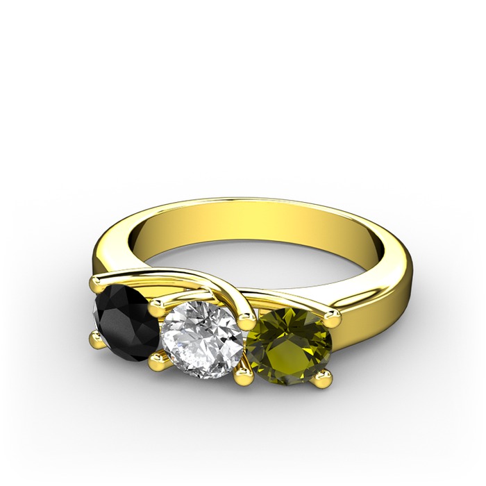 Siyah zirkon, beyaz zirkon ve peridot 8 ayar altın yüzük
