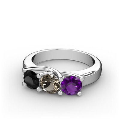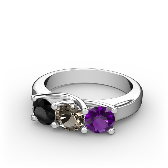 Siyah zirkon, dumanlı kuvars ve ametist 18 ayar beyaz altın yüzük
