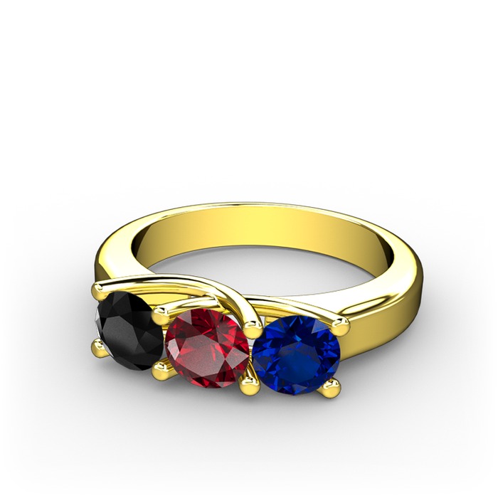 Siyah zirkon, garnet ve lab safir 18 ayar altın yüzük