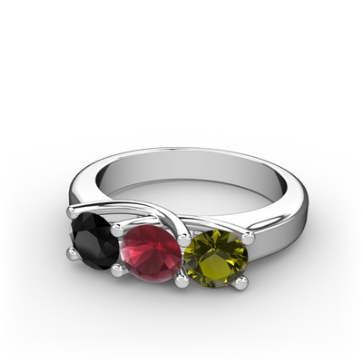 Siyah zirkon, kök yakut ve peridot 925 ayar gümüş yüzük