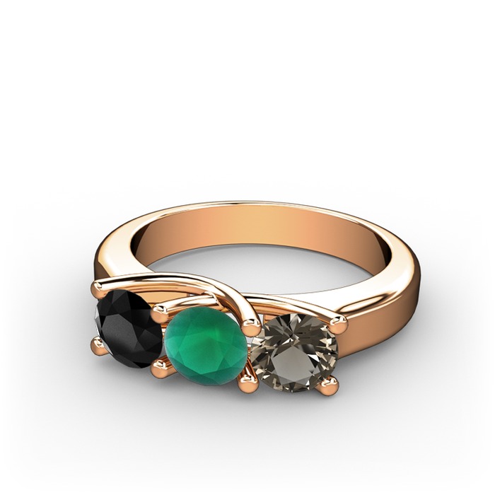 Siyah zirkon, kök zümrüt ve dumanlı kuvars 18 ayar rose altın yüzük