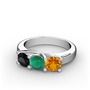 Siyah zirkon, kök zümrüt ve sitrin 14 ayar beyaz altın yüzük
